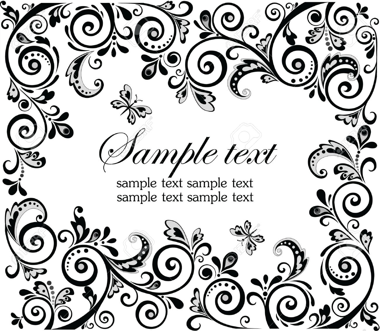 Vintage Blanco Y Negro Rectangular Marco Floral Ilustración Vectorial Con Copia Espacio. Ilustraciones Vectoriales, Clip Art Vectorizado Libre De Derechos. Image 78450286.
