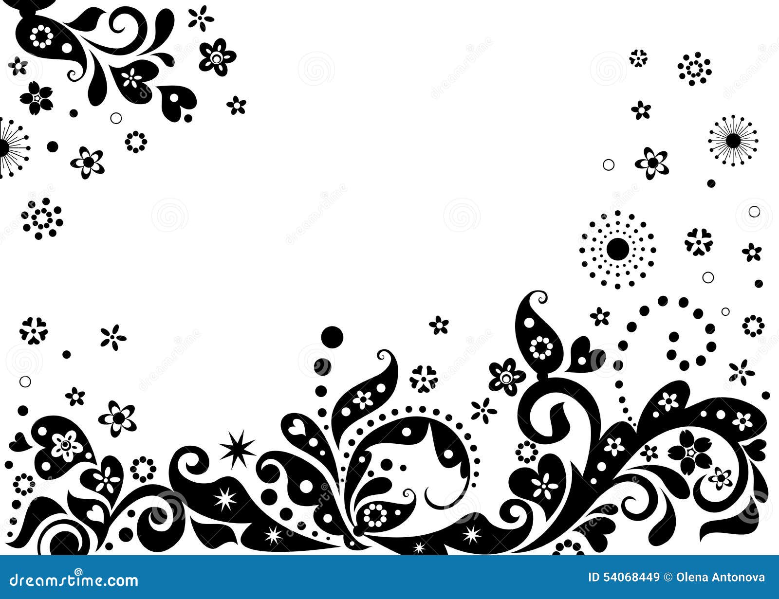Bandera Floral Del Vintage (blanco Y Negro) Ilustración del Vector - Ilustración de floral, blanco: 55523406