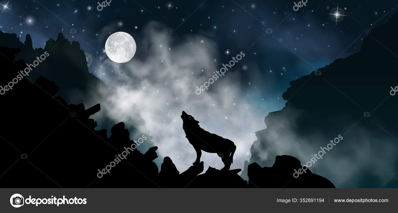 Uivos Do Lobo Na Paisagem Místico Azul Da Natureza Da Lua Cheia Ilustração do Vetor - Ilustração de uivos, lobo: 145831913